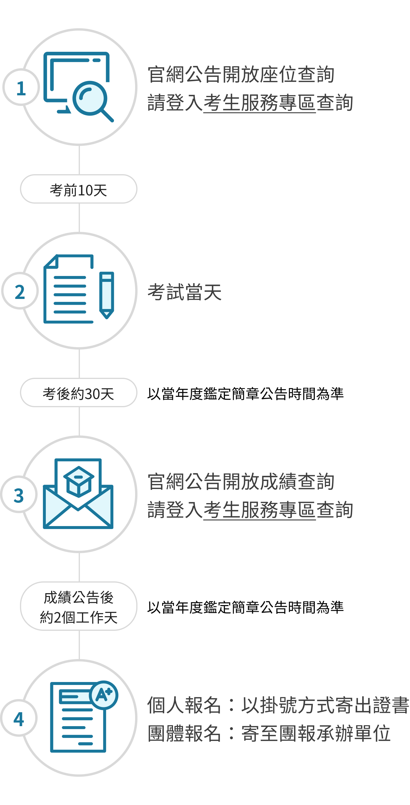 - 同時報考同一級等之所有科目,平均達70分,且每科成績不得低於60分。